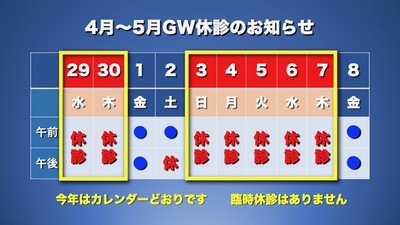 『令和8年ゴールデンウィーク休診のお知らせ』